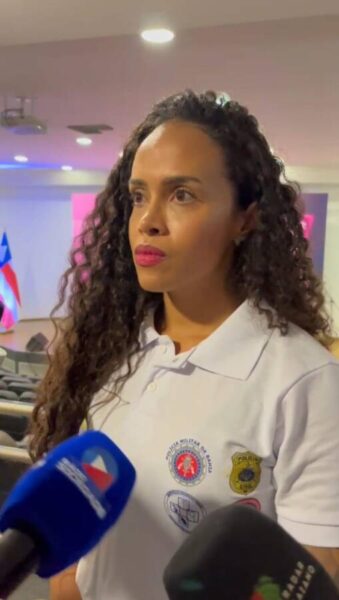 A coordenadora do Disque Denúncia da Bahia, Sabrina Aiêxa, destacou o impacto da nova ferramenta e reforçou o papel da população na localização de agressores com mandado de prisão por violência contra mulheres, durante o lançamento do Baralho do Crime Lilás, realizado nesta sexta-feira (12) no Centro de Operações e Inteligência (COI), .