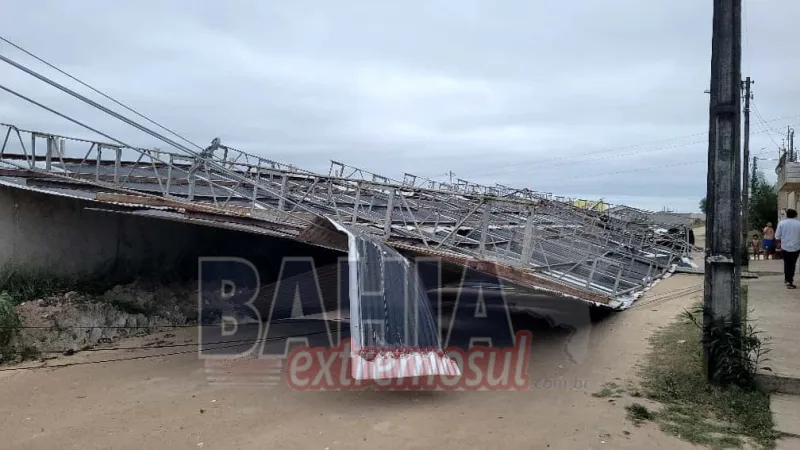 Forte vendaval atinge Bairro Eixo Sul e causa destruição de galpão em Teixeira de Freitas