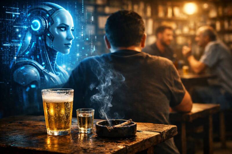 A inteligência artificial pode até conversar, mas não compreende o silêncio pesado de quem senta sozinho numa mesa de bar.