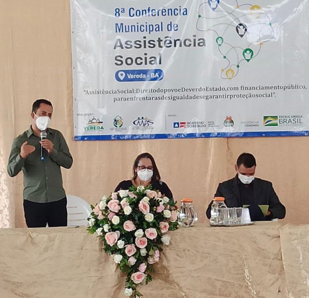 A Prefeitura de Vereda, juntamente com o Conselho Municipal de Assistência Social – CMAS e Secretaria de Assistência Social, realizou nesta sexta-feira, 20/08/2021, a 8ª Conferência Municipal de Assistência Social. Em detrimento do contexto pandêmico da Covid-19, o evento deu-se em formato compacto com público reduzido e trouxe como temática: Assistência Social: Direito do povo e dever do Estado, com financiamento público para enfrentar as desigualdades e garantir proteção social.