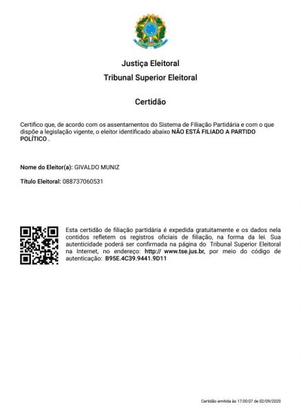 03 de setembro de 2020Uma informação pegou todos de surpresa na noite desta quinta feira 03 de setembro de 2020, onde em uma consulta ao sistema de filiação do TSE, o pré candidato a prefeito de Alcobaça aparece com filiação cancelada, no dia 31 de agosto de 2020.