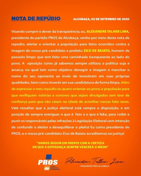 O presidente do partido também soltou uma nota a respeito do ocorrido.