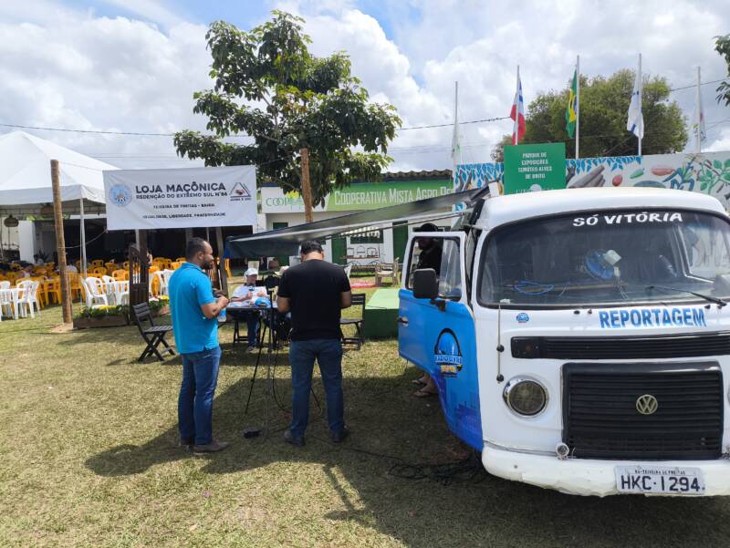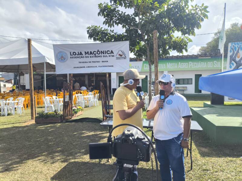 Rádio Livre realiza programa especial direto do estande gastronômico da Loja Maçônica Redenção do Extremo Sul na Exposição de Teixeira de Freitas